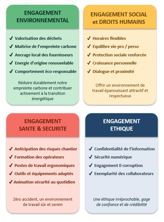 Ainsi, la RSE constitue le socle de notre vision et le moteur de nos actions, tandis que le référentiel MASE apporte un cadre concret et rigoureux pour assurer, au quotidien, la sécurité des personnes, la protection de l’environnement et la conformité de nos interventions.